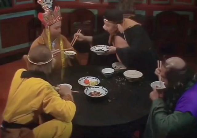 师徒四人西行途中用饭,唐僧着听衣。来源/影视剧《西游记》1986年版