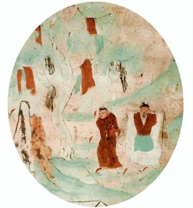 西北平民只选舒服耐穿的衣服。男子最常穿的是“衫”,尤其是短衫,长度到膝盖上下,两侧还开着衩,不管是在田里耕作,还是在作坊里织布,抬手抬腿都方便。莫高窟壁画上耕作的农民、修房子的泥匠,穿的都是这种短衫,有的还在外面套一件“半臂”。这是一种短袖外套,长不过腰,两袖只到肘部,干活时套着能挡点寒风,热了随手一脱也省事,连戍边的兵士,军装里都少不了半臂。