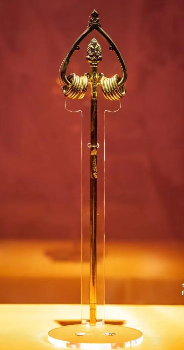 纯金单轮十二环锡杖。来源/法门寺博物馆