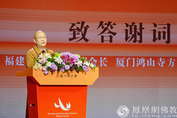 法云法师在第二届侨僧论坛闭幕式上致答谢词