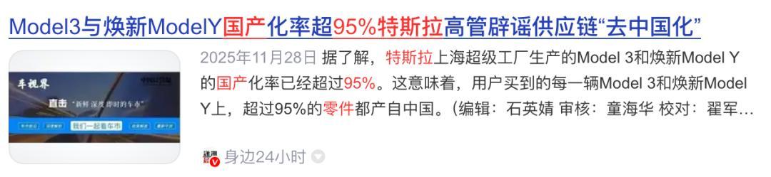 毕竟到现在,特斯拉很多核心零部件早就高度国产化了,